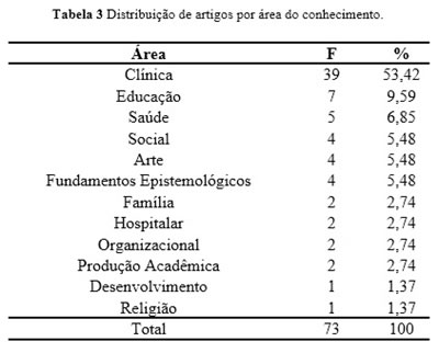 Em relação à distribuição da área de conhecimento dos artigos analisados, segundo a Tabela 3, notamos a existência de discussões enveredadas para diversas áreas.