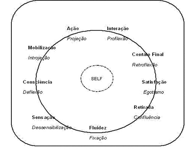 Segundo Ribeiro (1997) o ciclo do contato deve ser considerado um sistema dinâmico, relacionado a mudanças em que o "Self" (sistema de contato organismo-ambiente) assume esta função. Assim, um não existe sem o outro, ambos estão ligados com o mundo e com o ambiente. Este ciclo possui as seguintes características: Nove formas de resistências; Nove formas polares a estes mecanismos como Fatores de Cura; O ciclo encerra um programa, uma "Gestalt"; A mudança é uma função de contato de interação entre pessoa-mundo e bloqueio-fator de cura; e O Self está no centro do ciclo, é por onde os comportamentos se revelam. A partir disso, os fatores de cura, são chamados pelo autor de: fluidez, sensação, consciência, mobilização, ação, interação, contato final, satisfação, retirada. Eis a representação dos Fatores de Cura e do Ciclo de Contato, e posteriormente, as conceituações de cada uma concomitantemente: