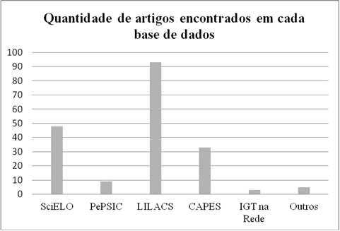 Gráfico 1 – Quantidade de artigos encontrados em cada base de dados, por meio da interconexão entre os descritores.